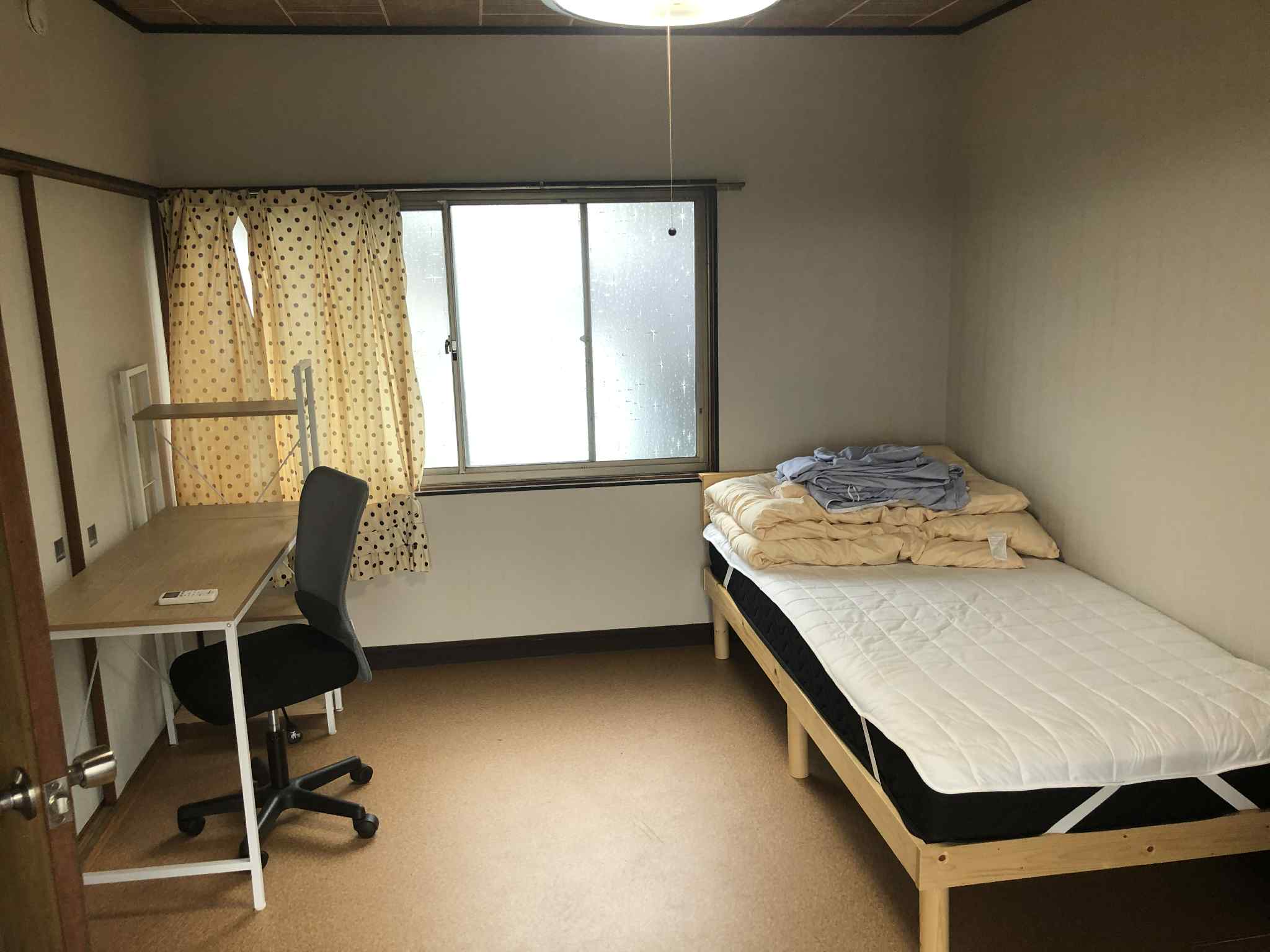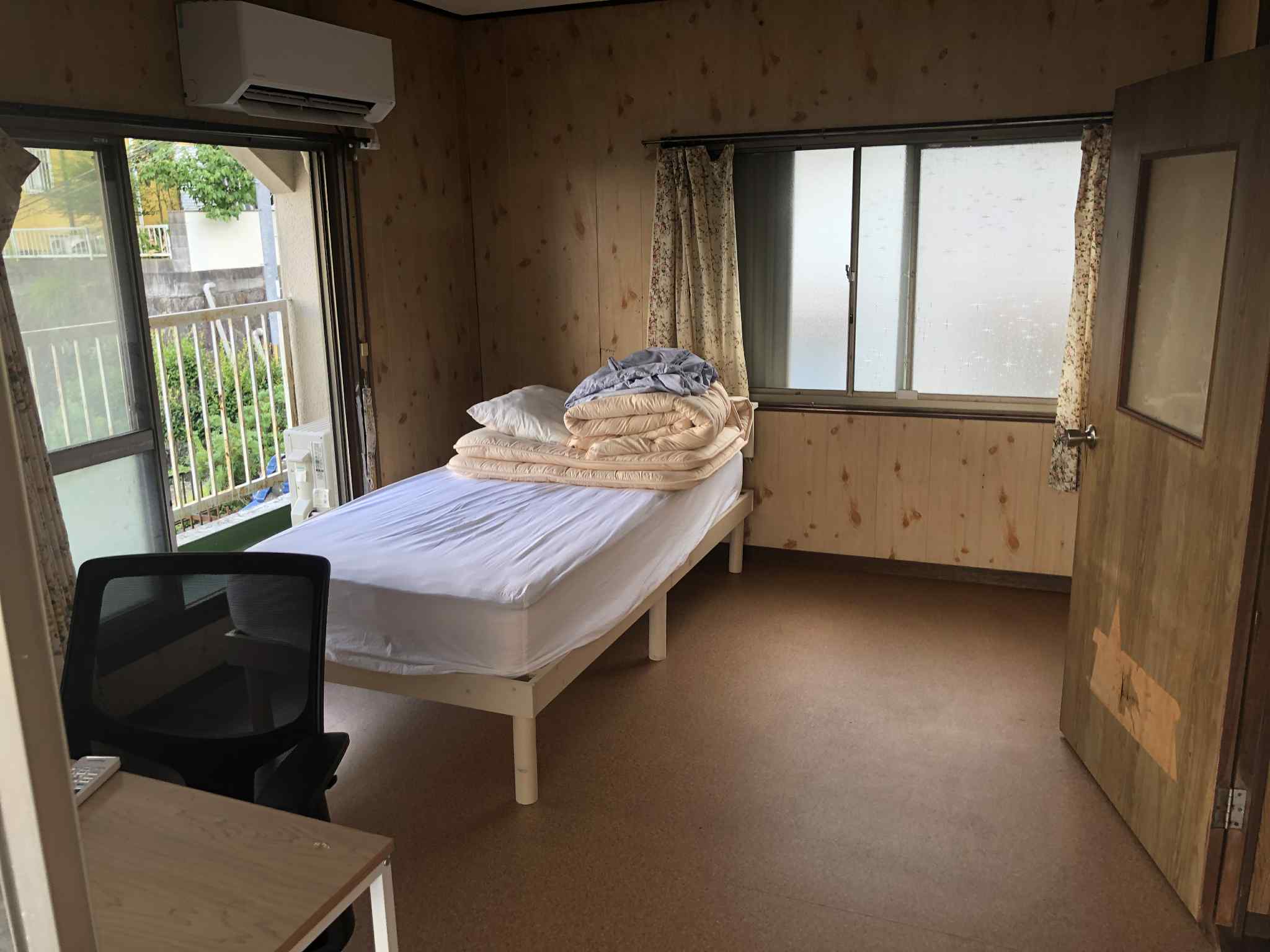 π Lockable room for privacy πͺ Equipped with a table, chair, air conditioner, mattress, and blanket